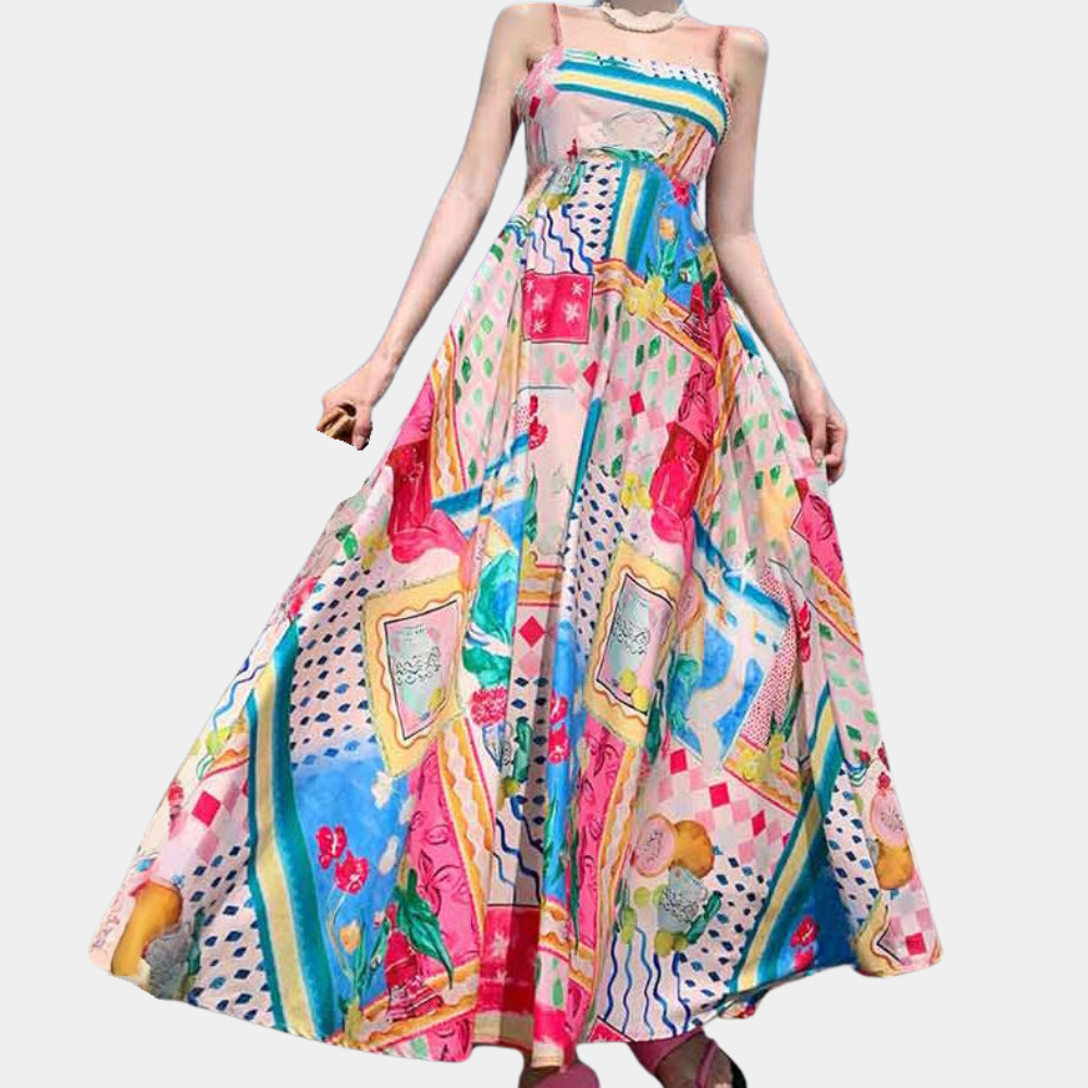 De Arty Strapless Jurk is een expressief statementstuk dat barst van kleur en creativiteit. Met haar strapless ontwerp en levendige patchworkprint is deze midi-jurk perfect voor warme dagen vol stijl. De flatterende A-lijn pasvorm en soepele stof zorgen voor ultiem draagcomfort met een speelse twist – ideaal voor vakantie, citytrips of een zomers feestje.
