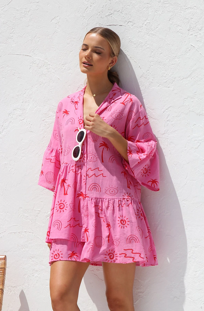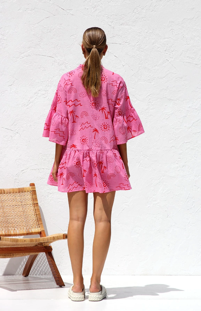 Draag deze tuniekjurk met sandalen en een rieten tas voor een moeiteloze zomerse look. Ook perfect als strand cover-up over je bikini. Voeg een hoed en zonnebril toe voor een relaxte maar stijlvolle uitstraling.