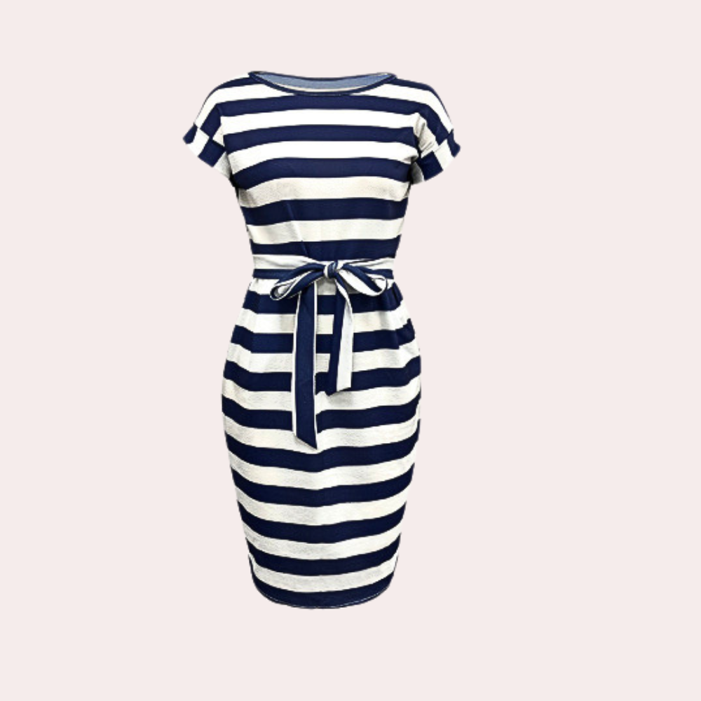 Coastal Stripe Dress | Casual Midi | Met Taillekoord en Zijsplit