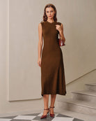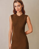 Cocoa Knit Dress | Mouwloos & Midi | Minimalistische Ribstructuur