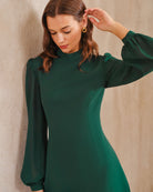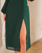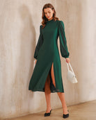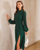 Eva Satin Dress | Hoge Hals & Zijsplit | Chic in Smaragdgroen