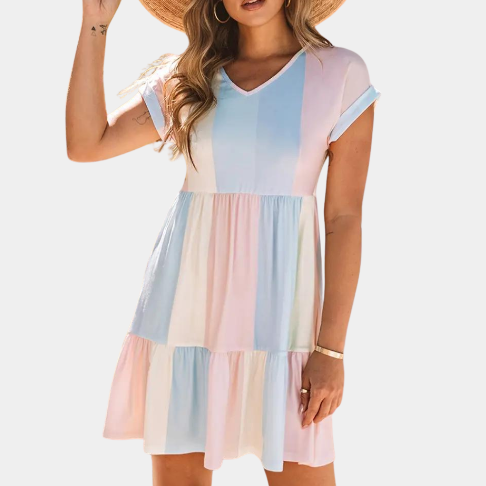 Luni Dress | Korte Jurk met Pastelstroken | Speels & Zomers