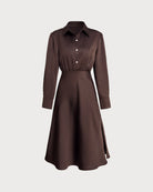 De Midnight Mocha Jurk straalt pure elegantie uit met een luxueuze satijnglans en een verfijnde chocoladetint. Deze midi-jurk met lange mouwen en een klassieke kraag combineert zachtheid met structuur, terwijl de lichte A-lijn pasvorm een sierlijk silhouet creëert. De glanzende stof vangt het licht prachtig bij elke beweging – perfect voor avondgelegenheden en stijlvolle events.
