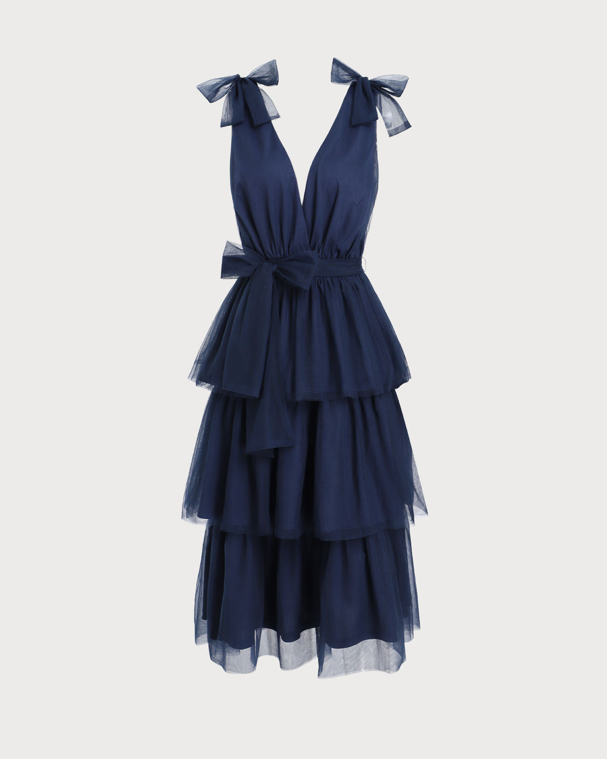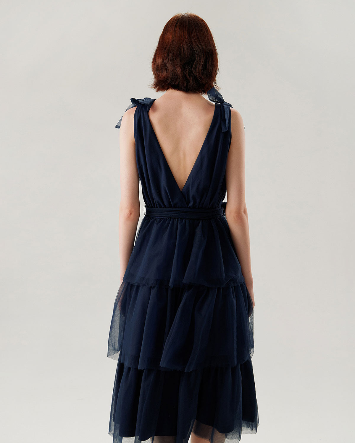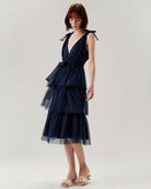 Midnight Ruffle Dress | Gelaagde Tule | Diepe V-Hals