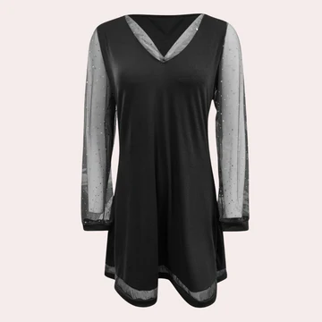 Noir Mesh Dress | V-Hals | Elegante Transparante Details