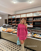 De Pink Tweed Dress combineert klassieke elegantie met moderne flair. Deze opvallende mini-jurk in helderroze tweed is een echt statementstuk, perfect voor wie houdt van een krachtige maar verfijnde look. De gestructureerde schouders, lange mouwen en sierknopen aan de voorzijde zorgen voor een stijlvol silhouet dat moeiteloos de aandacht trekt.