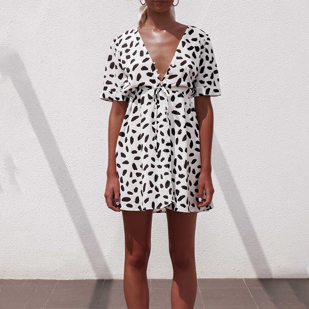 Polka Dot Mini Dress | V-hals & Vrouwelijke Fit | Casual & Stijlvol