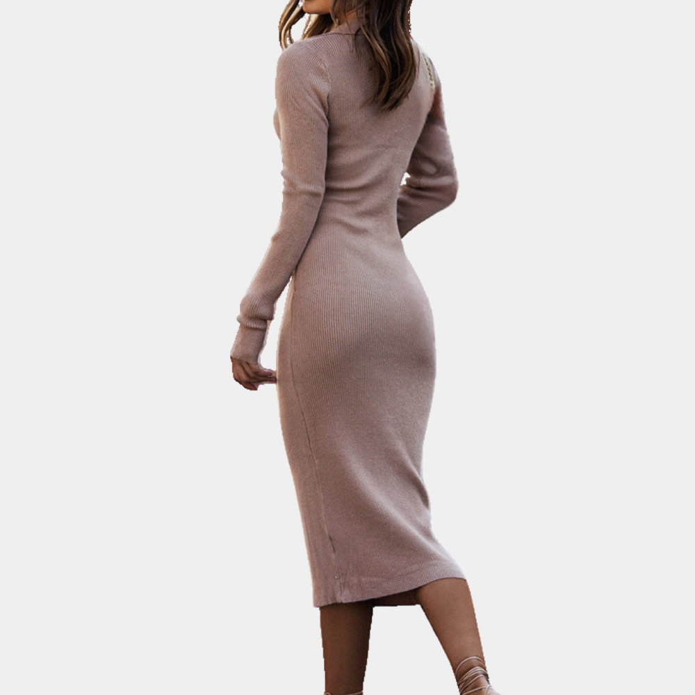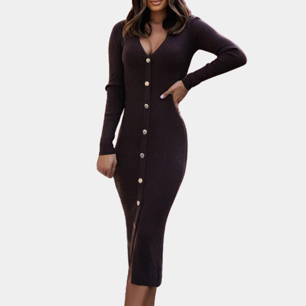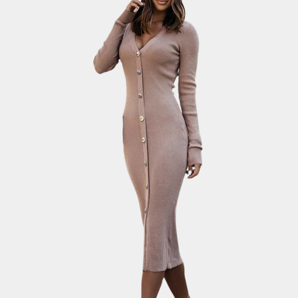 Serene Knit Dress | Getailleerde Midi | Elegante Knopenrij