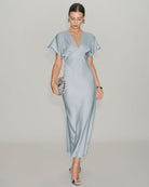 Sky Satin Jurk | Midi-lengte | V-hals & Vlindermouwen
