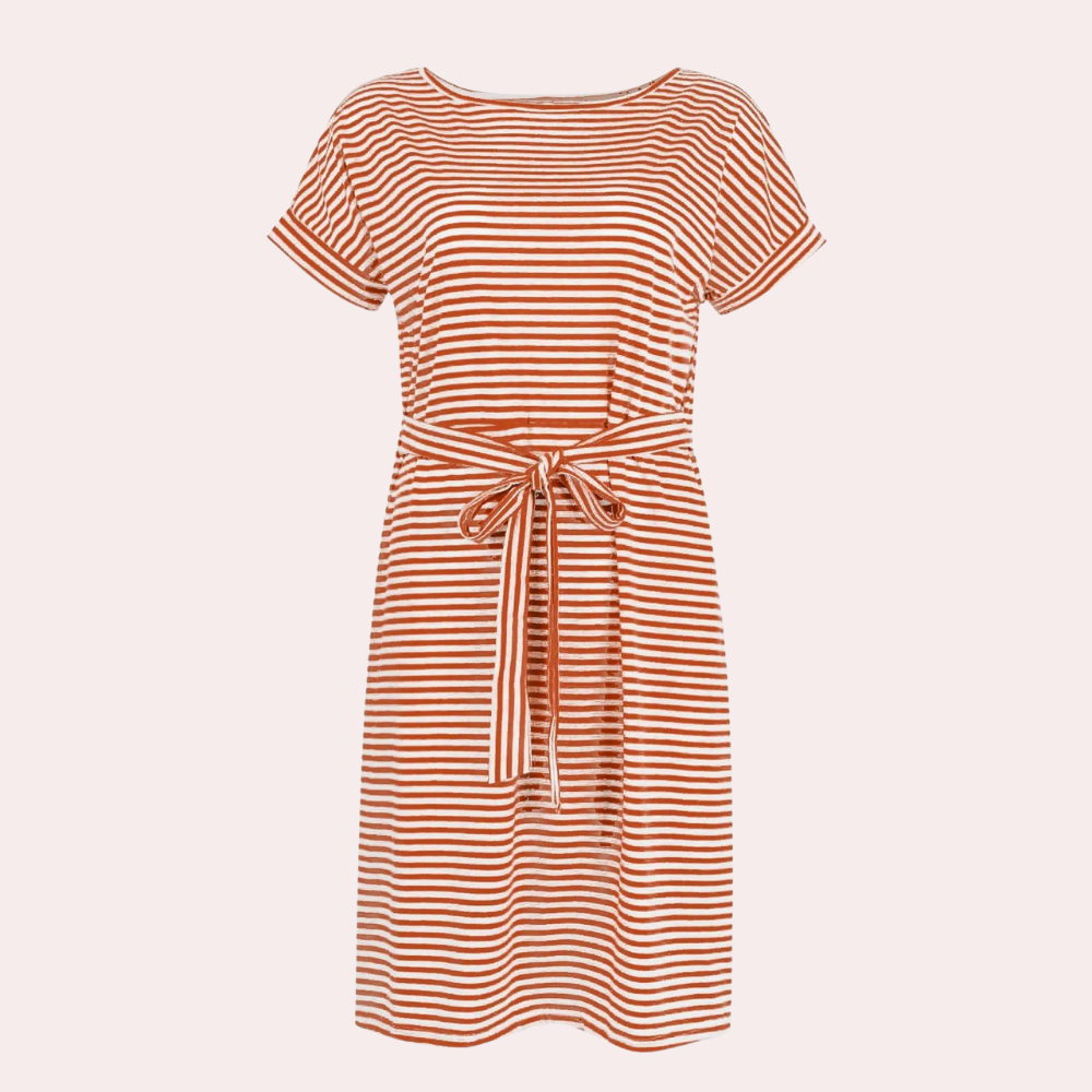 Soft Stripe Dress | Relaxte Pasvorm | Met Taillelint en Zachte Strepen