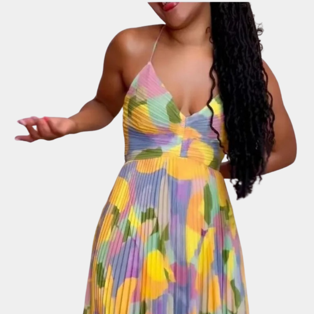 Soleil Jurk | Geplooide | Kleurrijke Zomerprint
