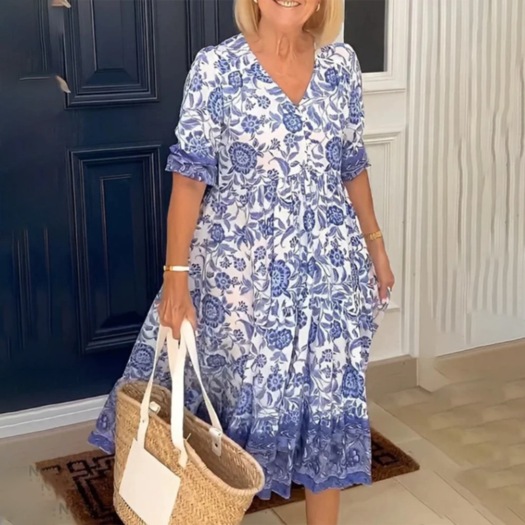 Sophie Midi Jurk | V-hals & Bloemenprint | Luchtig en Vrouwelijk