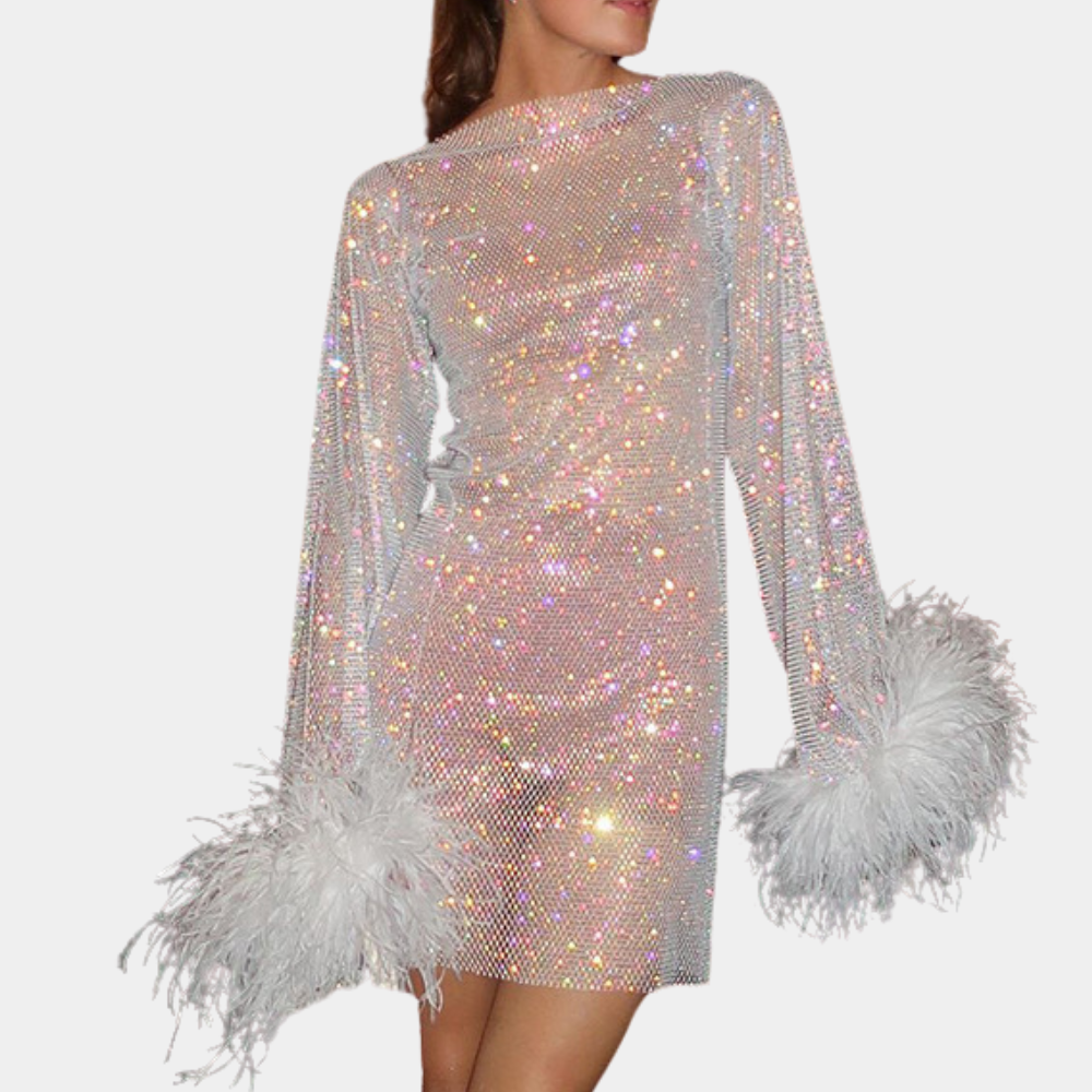 Sparkle Plume Dress | Glam Partylook | Pailletten & Verenaccenten