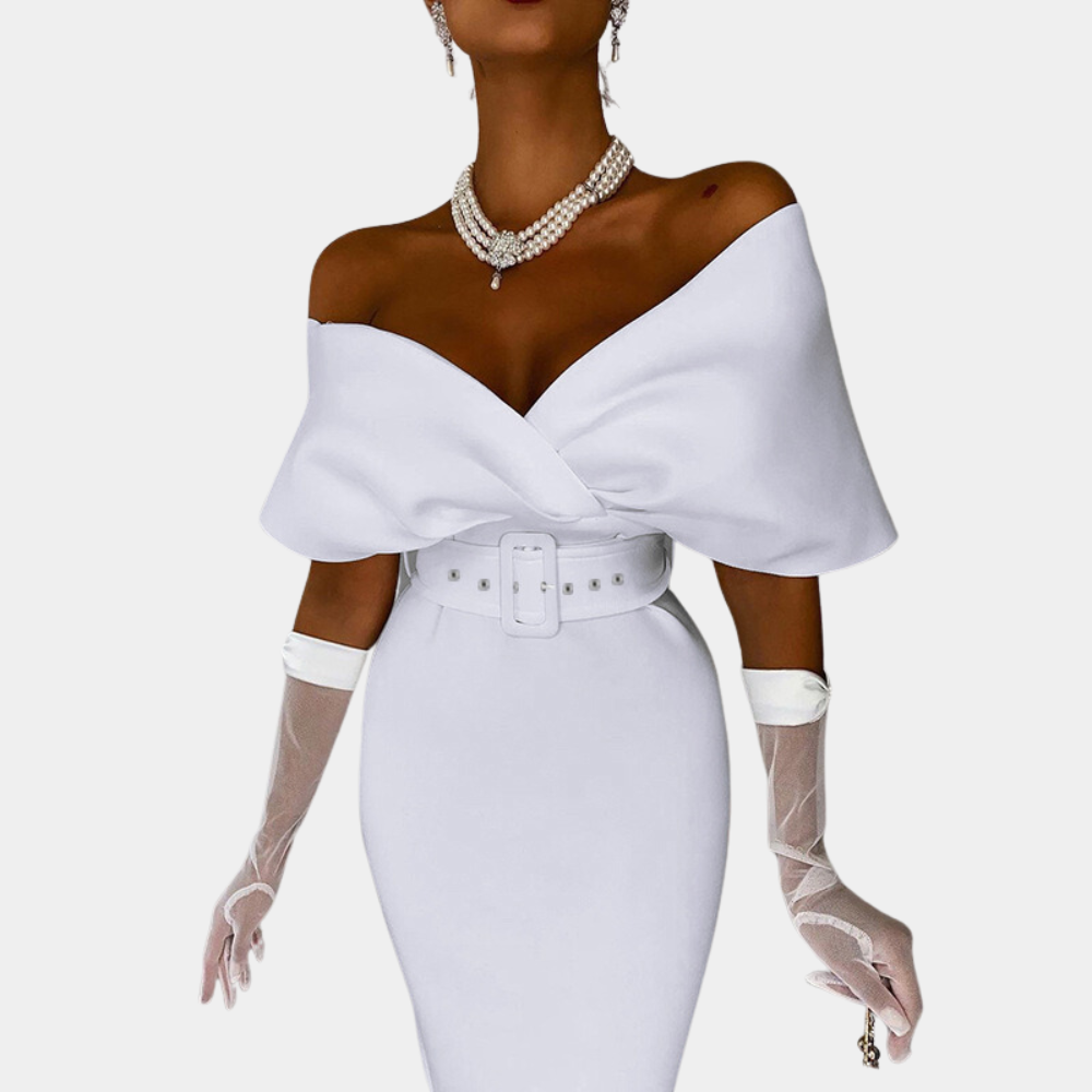 Verona Bow Dress | Off-Shoulder Cocktailjurk | Strikdetail & Luxe Pasvorm