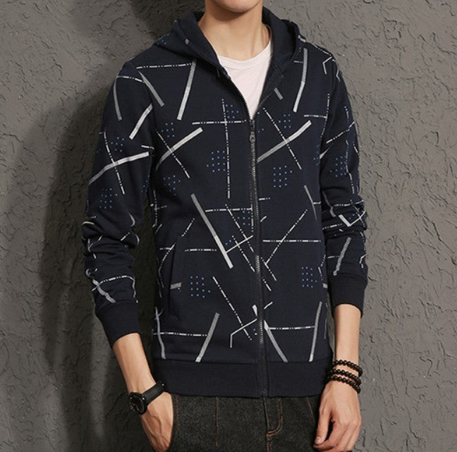 Heren Hoodie met Rits | Abstracte Print & Casual Pasvorm | Urban Comfy Style