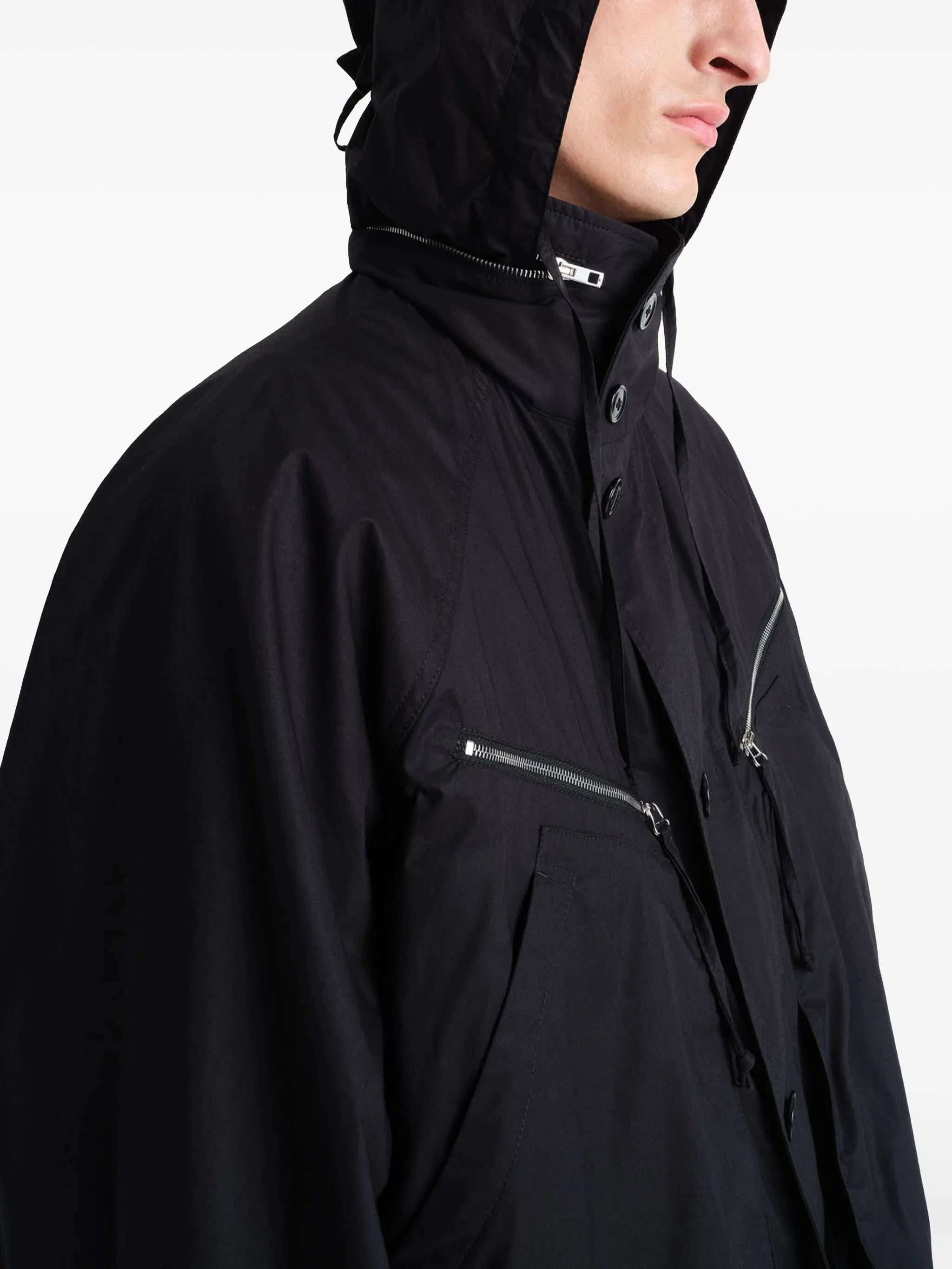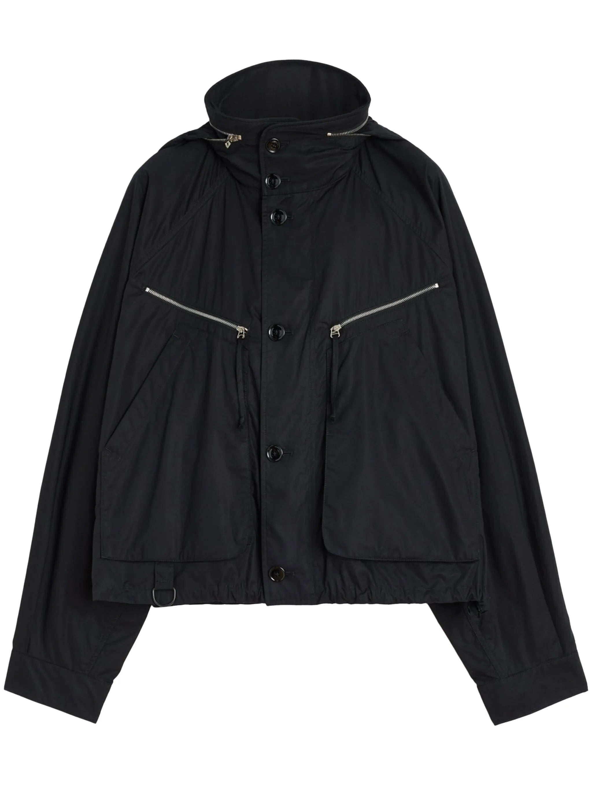 Deze lichtgewicht jas is gemaakt voor de moderne man die houdt van functioneel design. Voorzien van een capuchon met trekkoord, dubbele borstzakken met rits, een verstelbare taille en oversized fit voor optimale bewegingsvrijheid. De waterafstotende stof maakt het perfect voor frisse lentedagen of winderige herfstwandelingen. Subtiele details zoals zilveren ritsen en een gelaagde rugconstructie zorgen voor een stoere en moderne uitstraling.