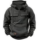De Tactical Hoodie is ontworpen voor wie comfort en functionaliteit wil combineren in een robuuste stijl. Deze hoodie beschikt over meerdere borstzakken met klepsluiting, een ruime capuchon en een kangoeroezak voor extra gemak. De stevige stof en militaire invloeden maken dit een ideale keuze voor outdooractiviteiten of een casual urban look met karakter.