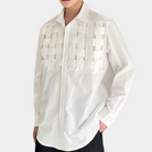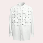 Het Berlin Shirt is een uniek statementstuk dat klassieke vormen combineert met avant-garde details. De geweven accenten op het borststuk geven dit overhemd een uitgesproken textuur en artistieke flair. Perfect voor modebewuste momenten waarbij je verfijning en creativiteit wilt uitstralen.