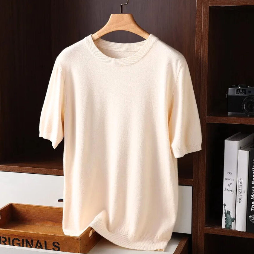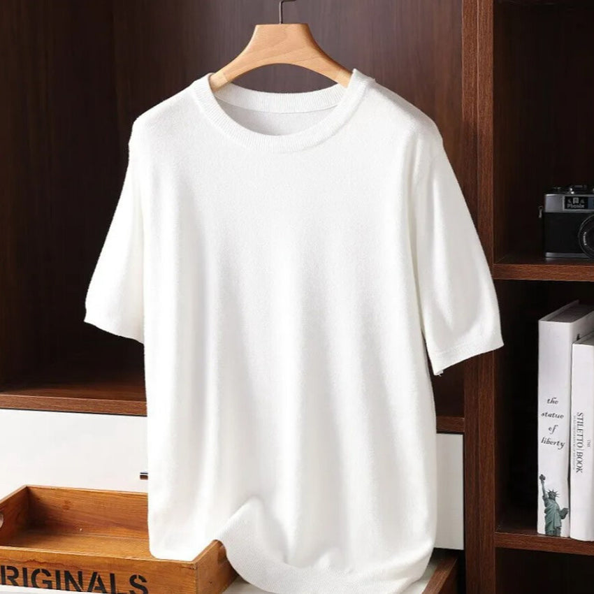 Gebreid Heren T-shirt | Minimalistische Zomerstijl | Zachte Stretch in Effenkleuren