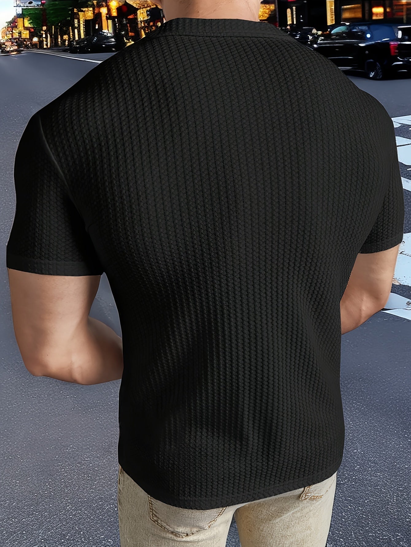Dit shirt tilt jouw dagelijkse stijl moeiteloos naar een hoger niveau met zijn unieke, licht elastische breisel dat perfect aansluit op het lichaam. De open kraag en knoopsluiting zorgen voor een relaxte maar gepolijste uitstraling – ideaal voor zowel city nights als terrasdagen. Verkrijgbaar in tijdloze kleuren zoals zwart, wit, bordeauxrood en lichtgrijs, past dit shirt moeiteloos in elke moderne herengarderobe. De gestructureerde textuur geeft het shirt een luxe uitstraling, terwijl het ademend materiaal garant staat voor comfort.