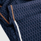 Design: Wafeltextuur met contrasterende stiksels en knoopdetail