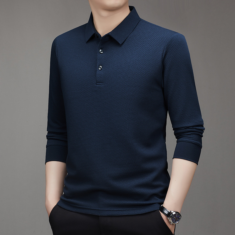 Gebreide Polo met Lange Mouwen voor Heren | Textuurdetail | Elegante Smart Casual