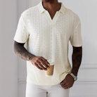Gehaakt Heren Shirt | Opengewerkt Design | Retro Resort Look in Crèmekleur