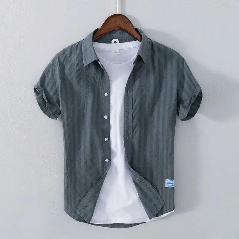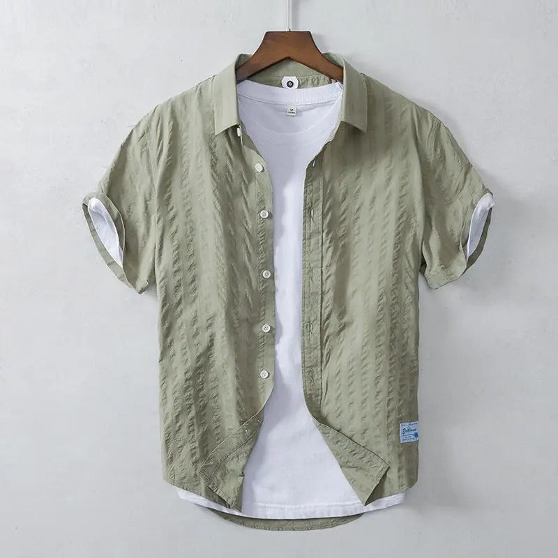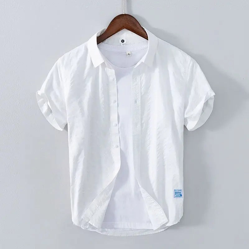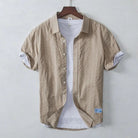 Dit korte mouwen overhemd is ontworpen met een slim gelaagd effect: het lijkt alsof er een basic wit T-shirt onder gedragen wordt, waardoor je look meteen compleet is. Gemaakt van een luchtige katoenmix met een licht gekreukte textuur, biedt het zowel comfort als stijl. De ontspannen fit, opgerolde mouwen en subtiele kleuren maken dit een perfect item voor dagelijks gebruik, vakantie of zomerse city days.