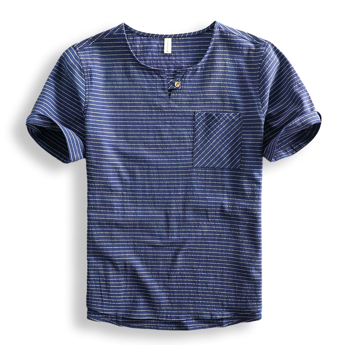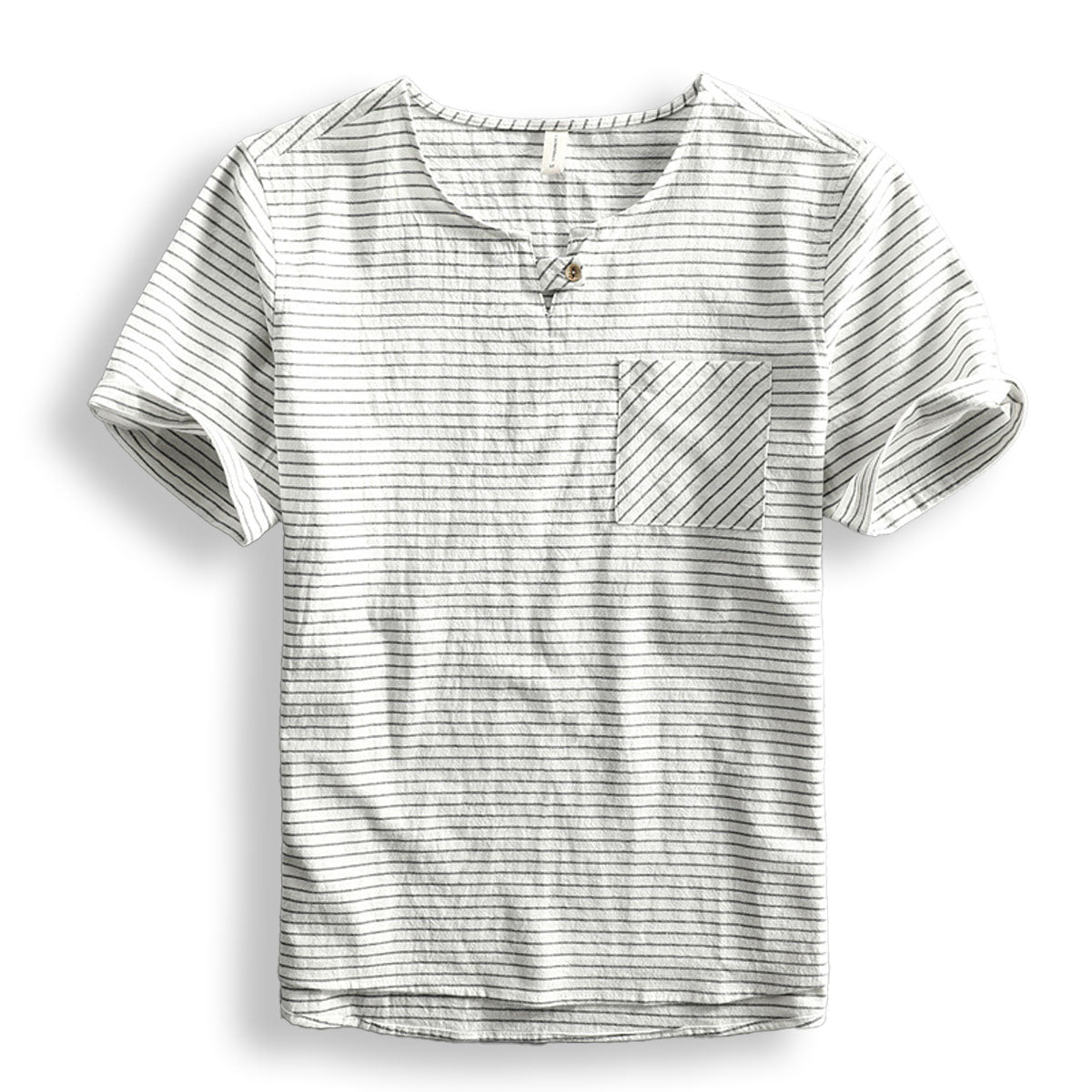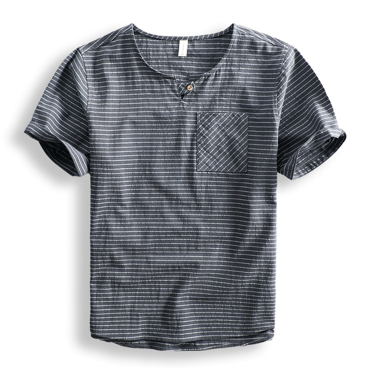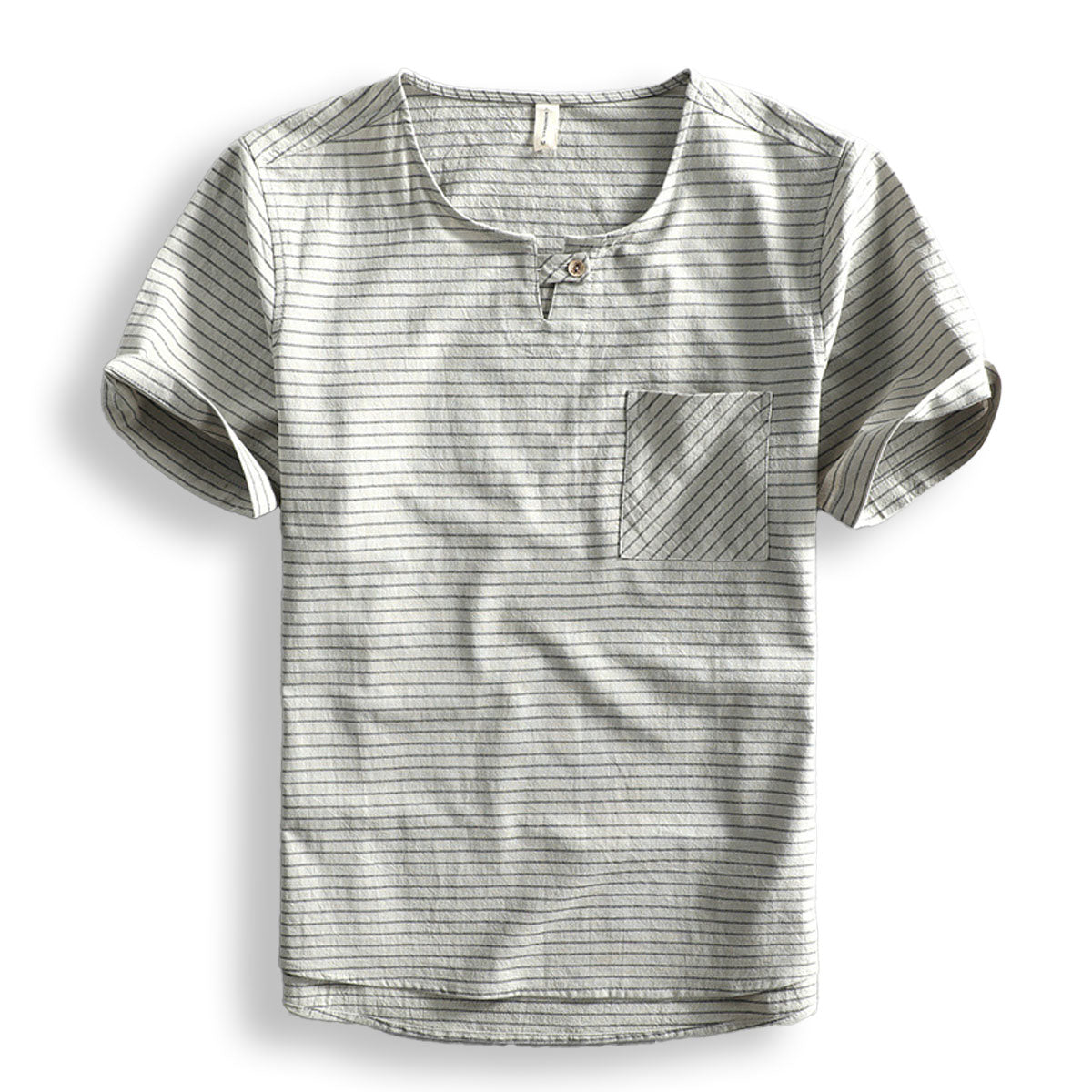 Met zijn fijne horizontale streepprint, ronde hals en subtiele borstzak straalt dit T-shirt casual klasse uit. De licht opgerolde mouwen geven het geheel een speels en nonchalant effect, terwijl de zachte katoenblend garant staat voor draagcomfort. Verkrijgbaar in veelzijdige kleuren zoals navy, grijs, lichtblauw en zand – perfect om eindeloos te combineren met jeans, shorts of onder een open overhemd.