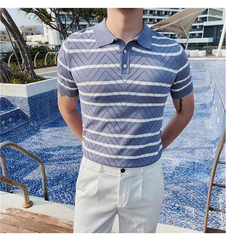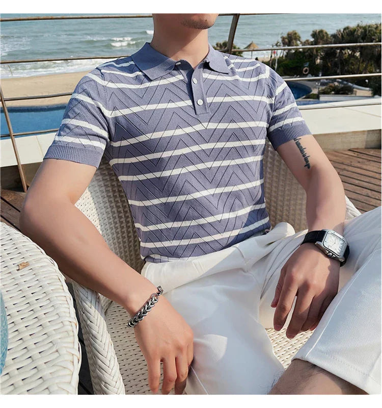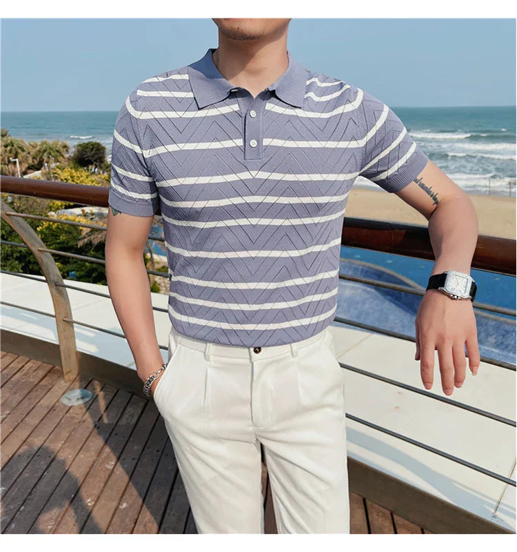 Gestreepte Gebreide Polo | Katoenmix | Stijlvol & Ademend