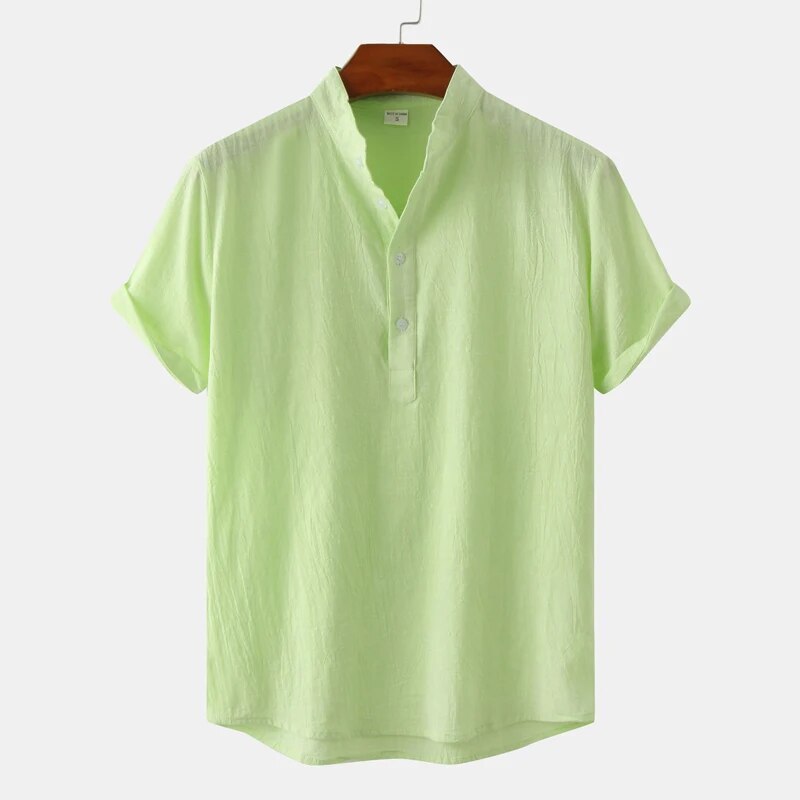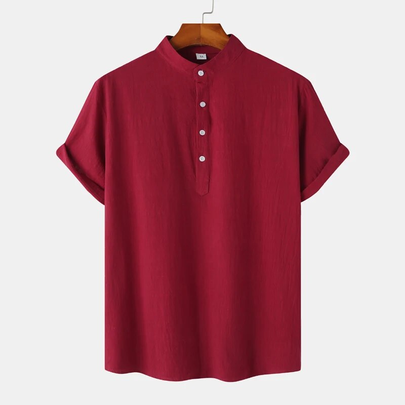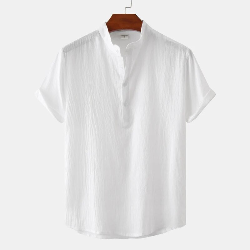 Heren Casual Kraagloos T-Shirt | Korte Mouwen | Knoopsluiting & Zomerse Look