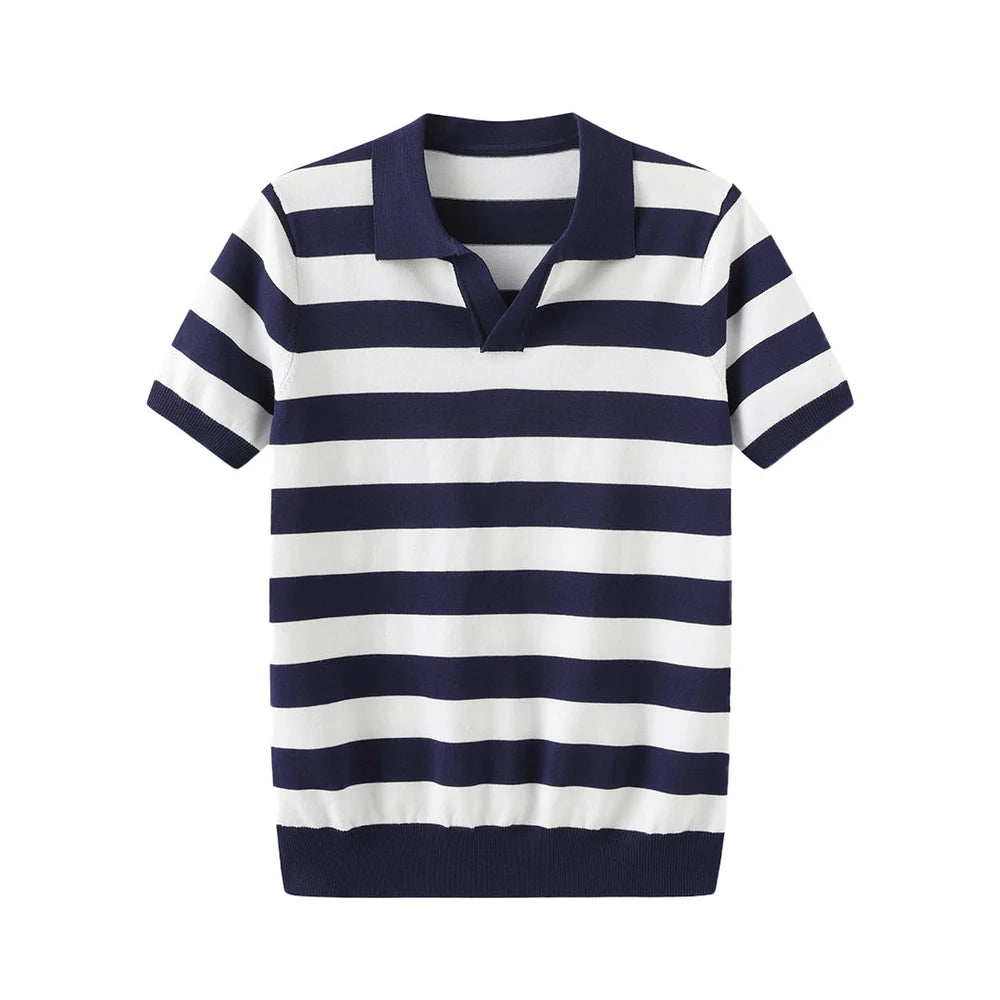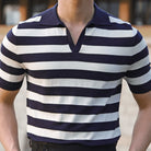 Heren Knit Polo met Brede Strepen | Split Collar | Nautical Retro Style