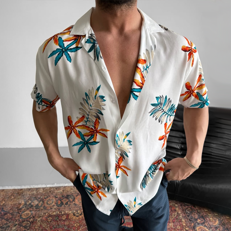 Heren Korte Mouwen Overhemd met Tropische Print | Casual Resort Look | Zomer Essential