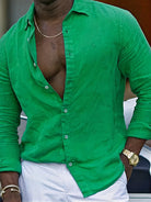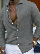 Heren Linnen Overhemd met Lange Mouwen | Deep V-Cut | Summer Luxe Look