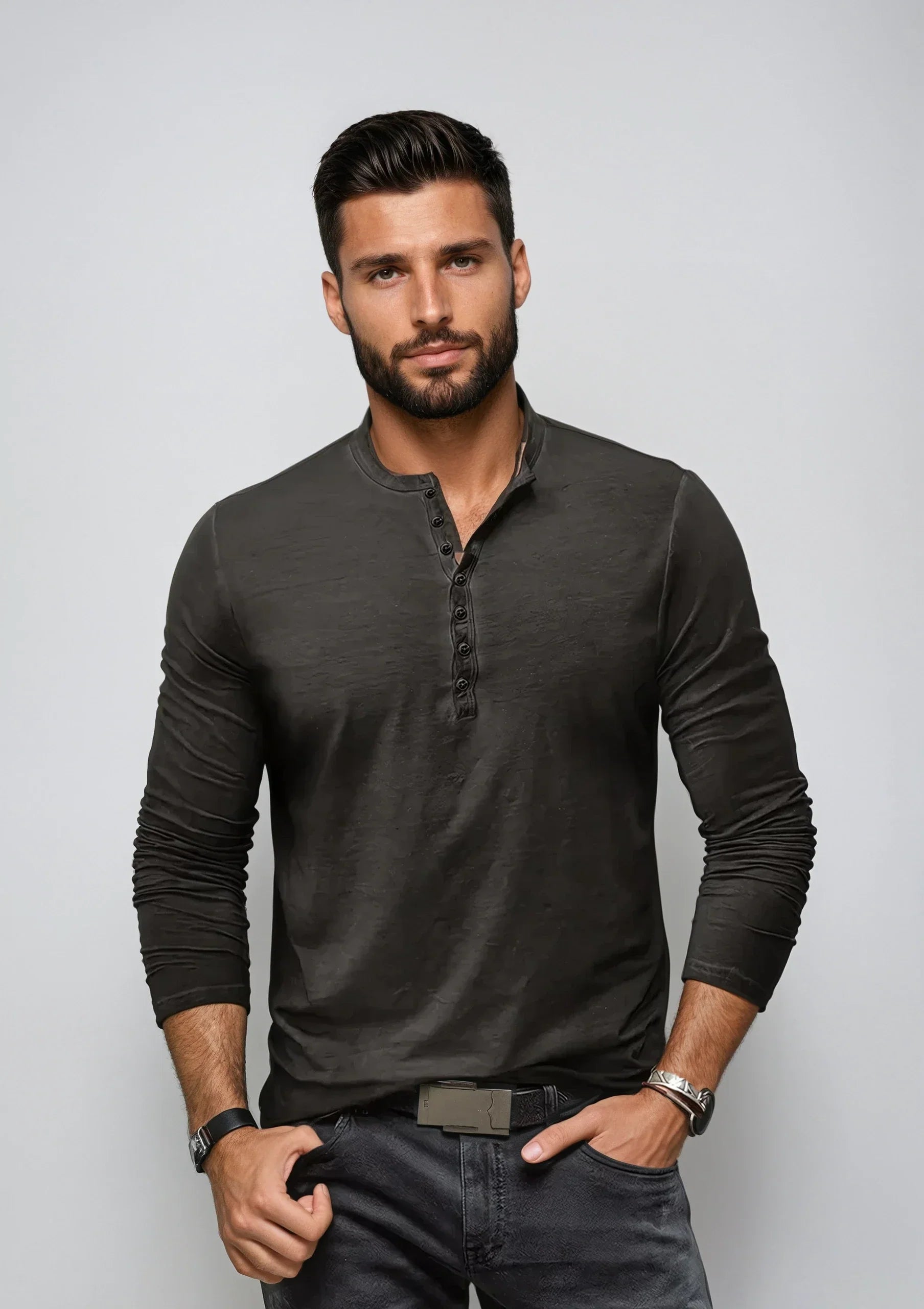 Heren Longsleeve Shirt met Knoopsluiting | Henley Stijl | Slim Fit