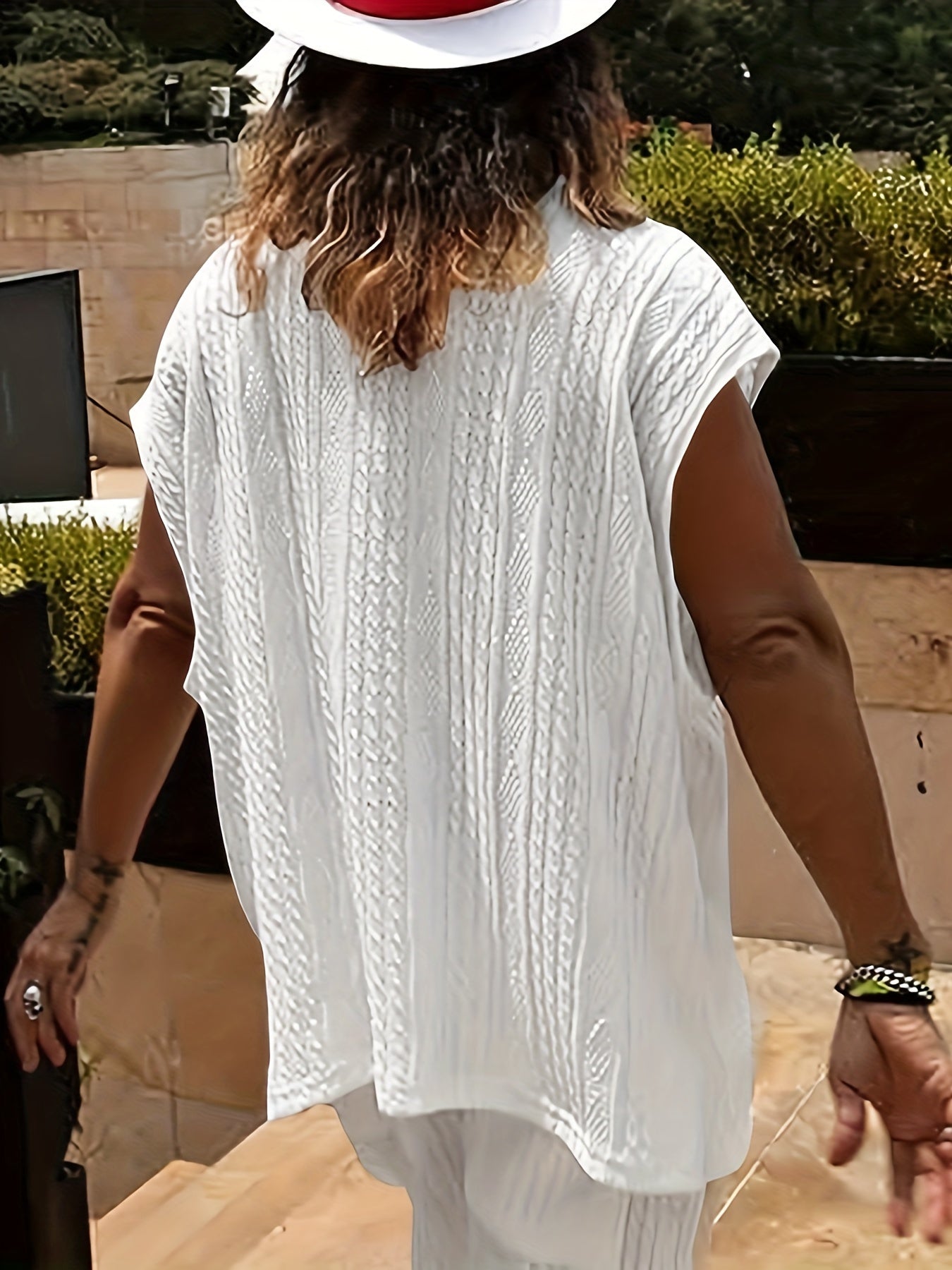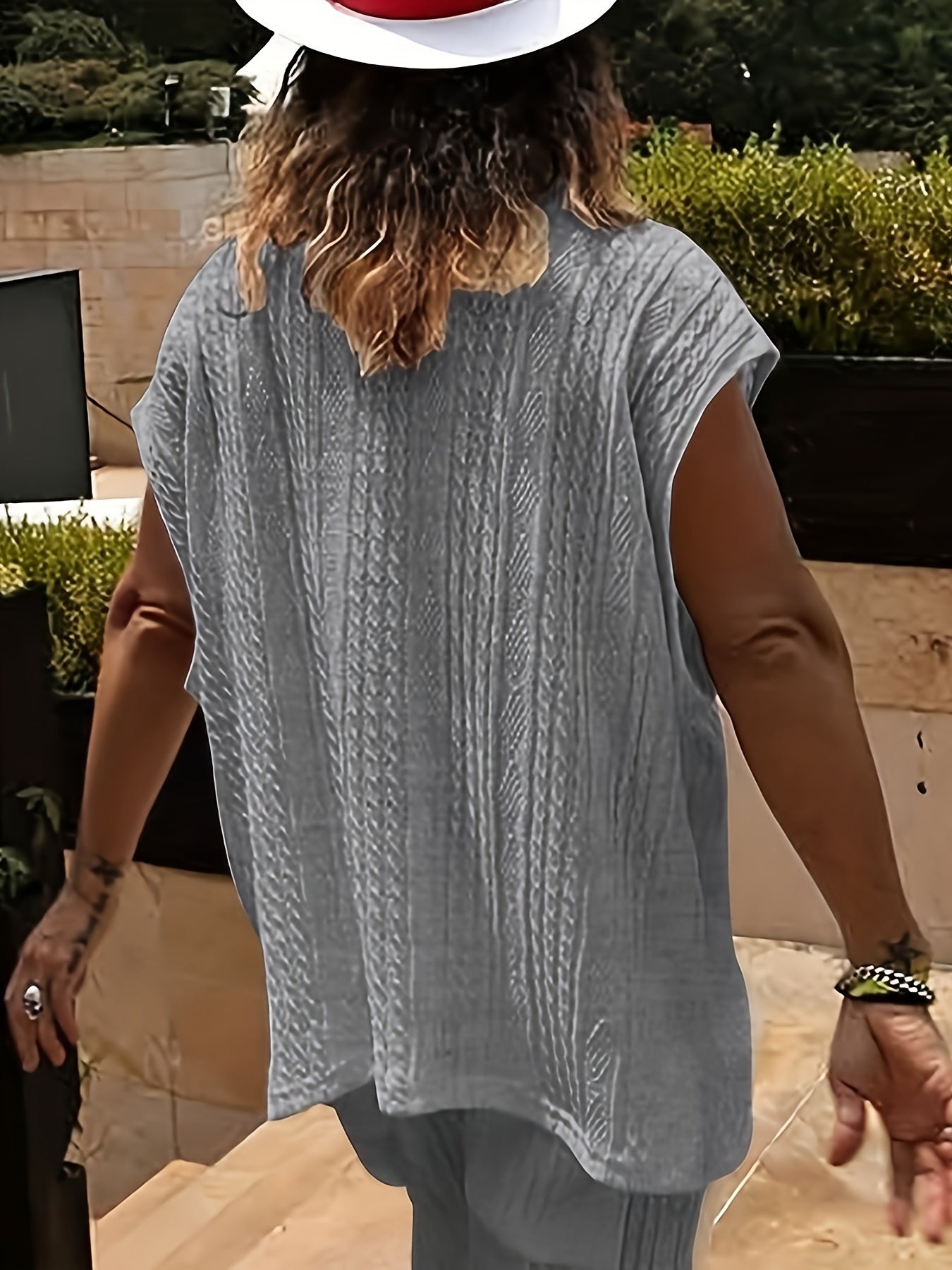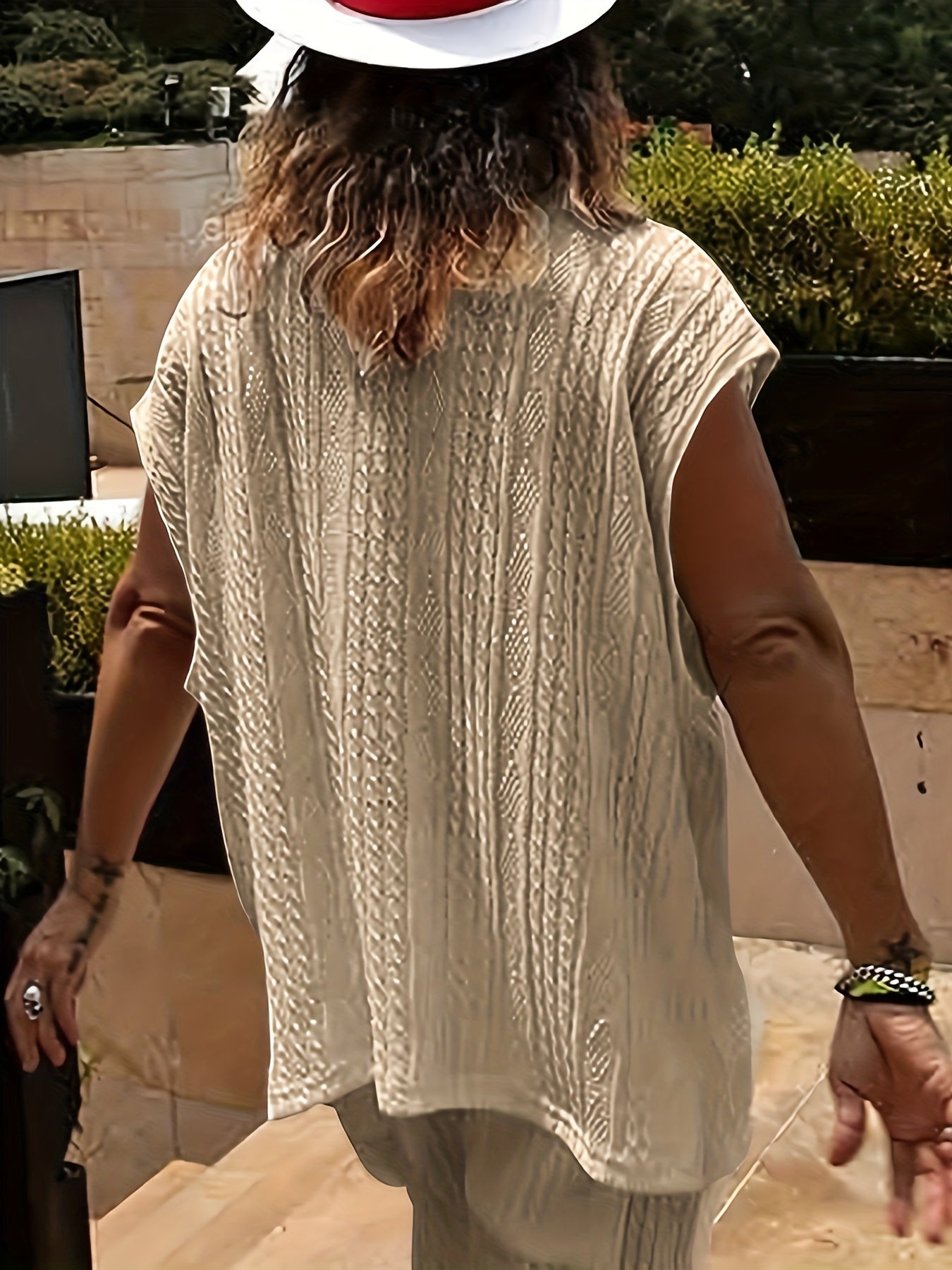 Draag deze top met een linnen broek en instappers voor een verfijnde zomerlook, of combineer met shorts en een zonnehoed voor een relaxte, moderne uitstraling.