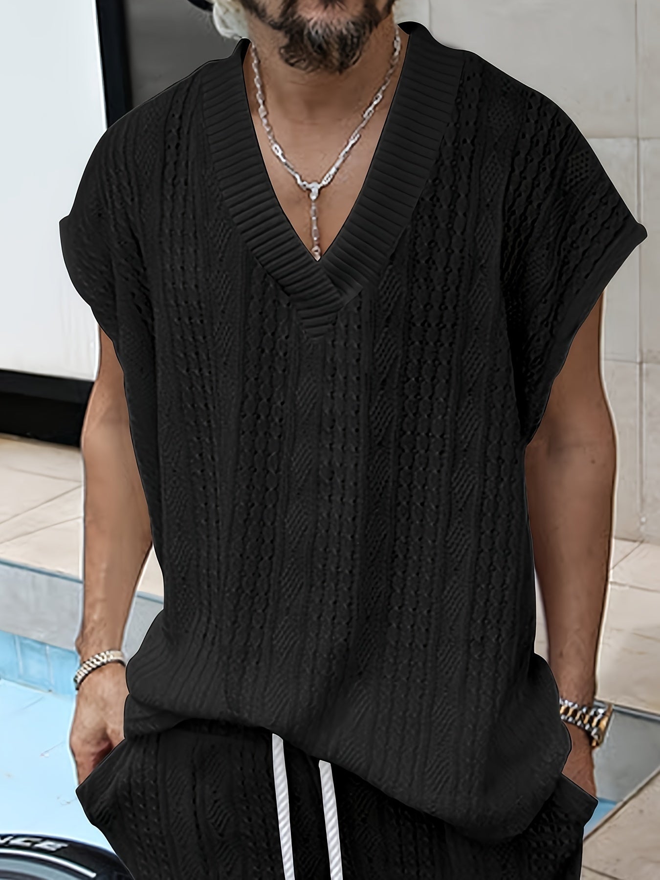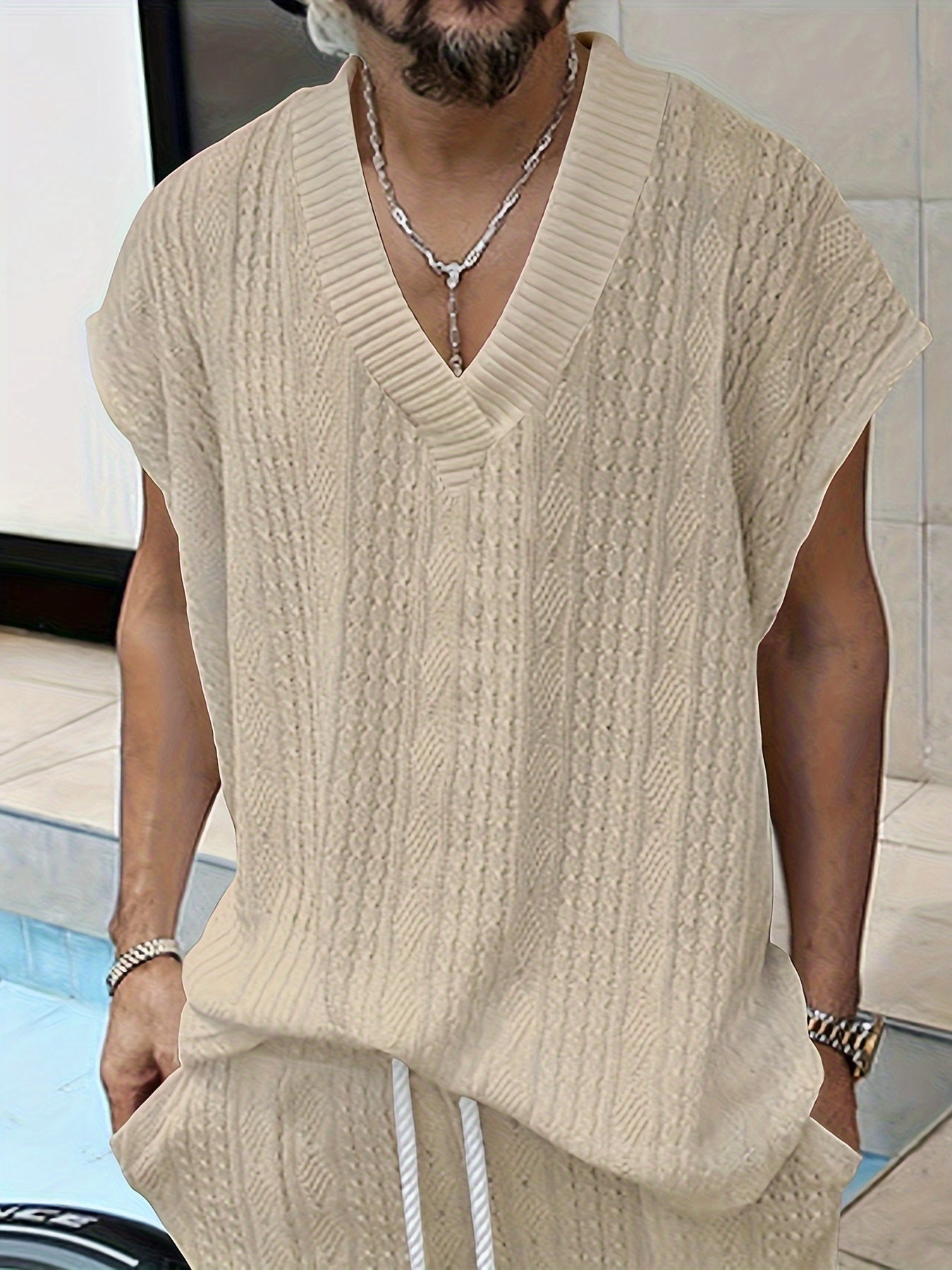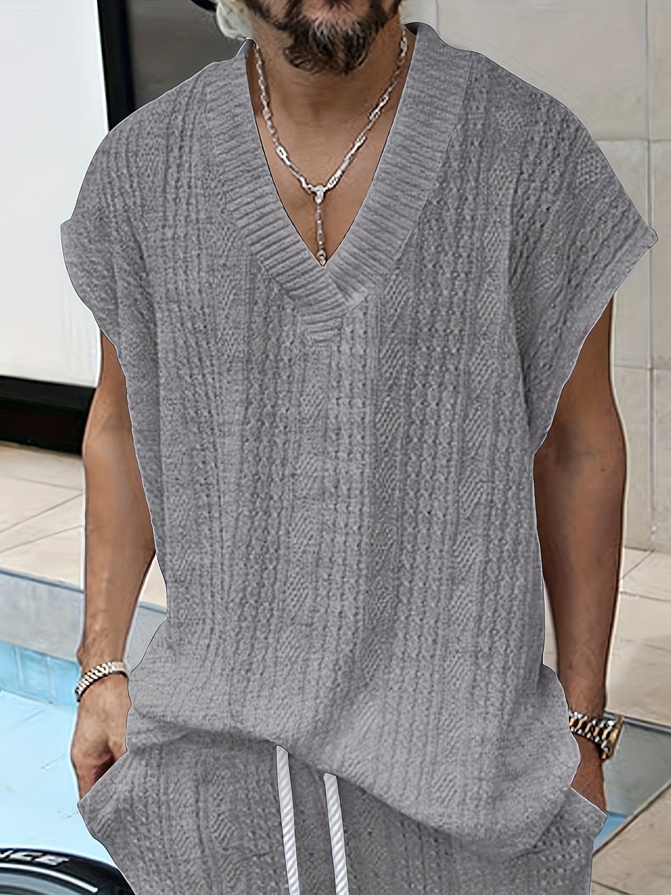 Heren Mouwloze Gebreide Top | V-Hals | Relaxte Zomerlook