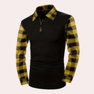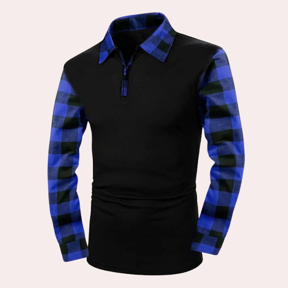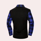 - Uniek design: Effen body met contrasterende geruite mouwen voor een moderne uitstraling.