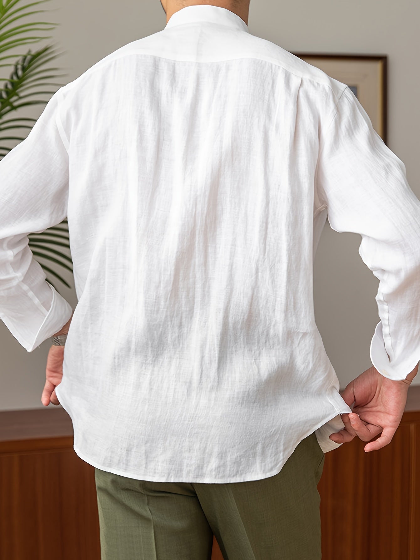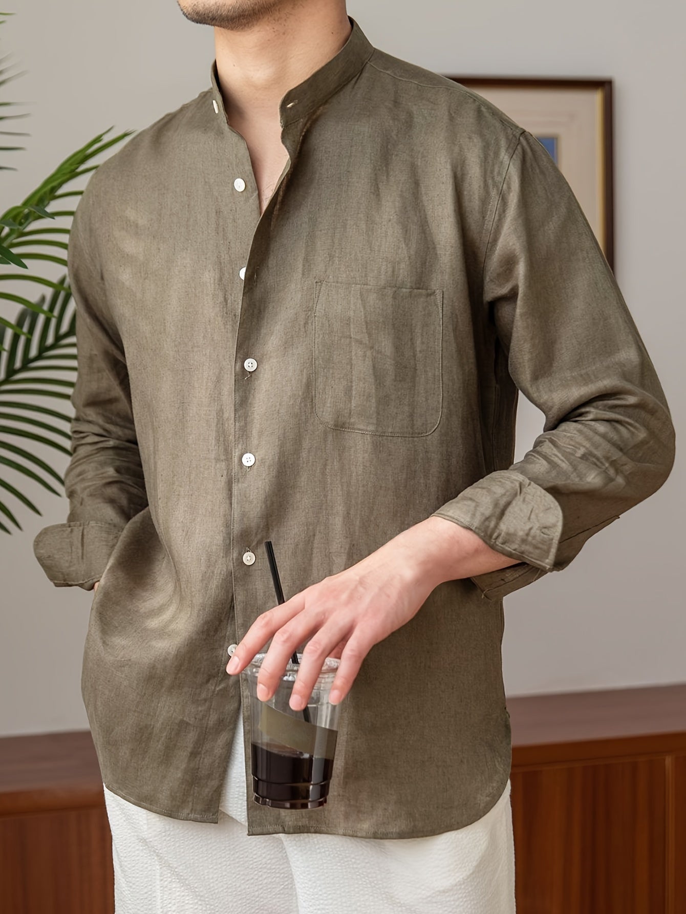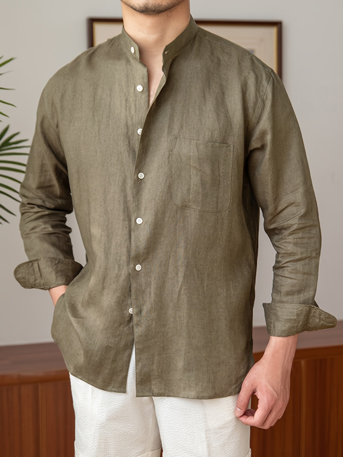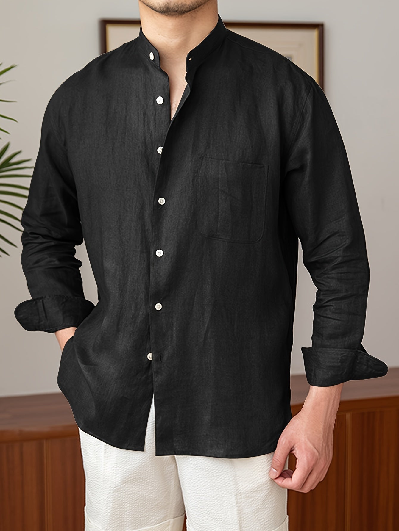 Dit losvallende overhemd is vervaardigd uit een ademende stof met linnenstructuur en biedt een natuurlijke, elegante uitstraling. Het rechte silhouet met opstaande kraag en knoopsluiting zorgt voor een tijdloze look die je makkelijk draagt in elke situatie. Of je het nu open draagt over een shirt of gesloten als hoofditem – dit overhemd past zich moeiteloos aan jouw stijl aan.