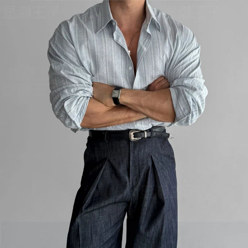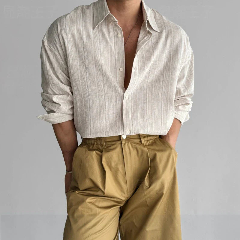 Deze casual herenoverhemden met subtiele streep en relaxed fit zijn ideaal voor zowel een dag op kantoor als een zomerse avond op het terras. Gemaakt van een ademende katoen-linnenmix en afgewerkt met een klassieke kraag, zorgen ze voor een elegante look zonder te strak of formeel aan te voelen.