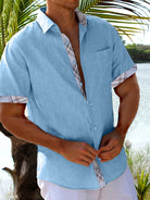 Dit herenoverhemd met korte mouwen is ontworpen voor de moderne man die houdt van een relaxte, zomerse stijl. De contrasterende binnenvoering van de mouwen en knoopsluiting zorgt voor een frisse twist, terwijl de luchtige stof en comfortabele pasvorm ideaal zijn voor warme dagen. Perfect voor op het strand, vakantie of gewoon een casual dag in de stad.