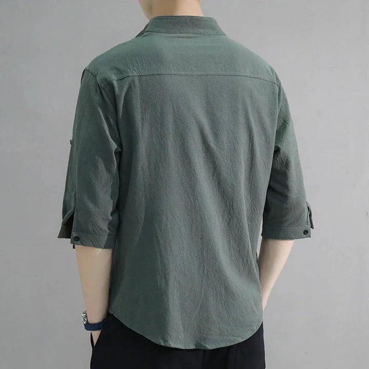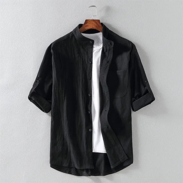 Heren Overhemd met Opstaande Kraag | Japandi Minimal Style | Relaxed Fit