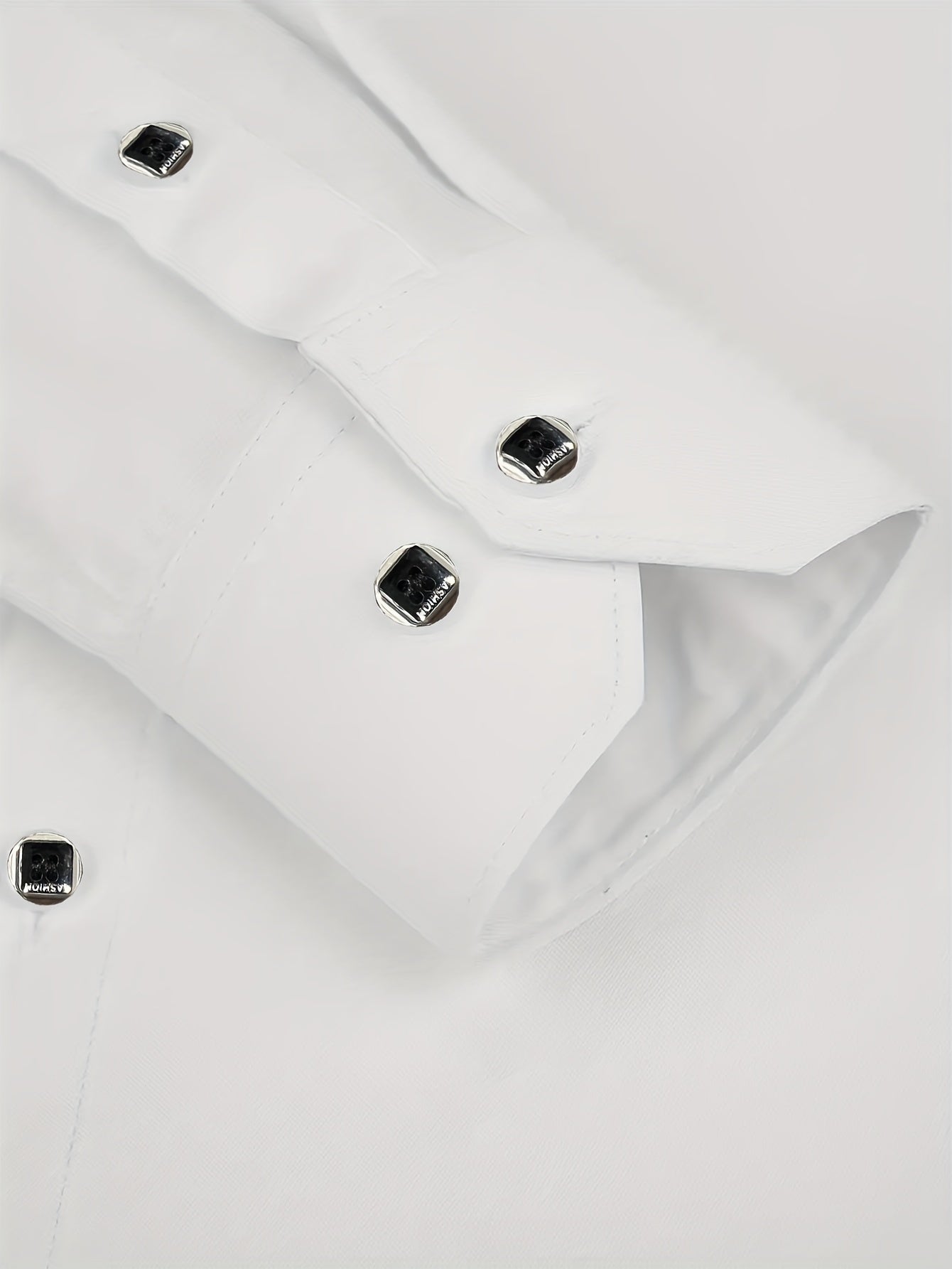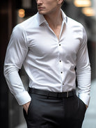 Heren Overhemd | Slim Fit | Klassiek Wit met Zwarte Knopen