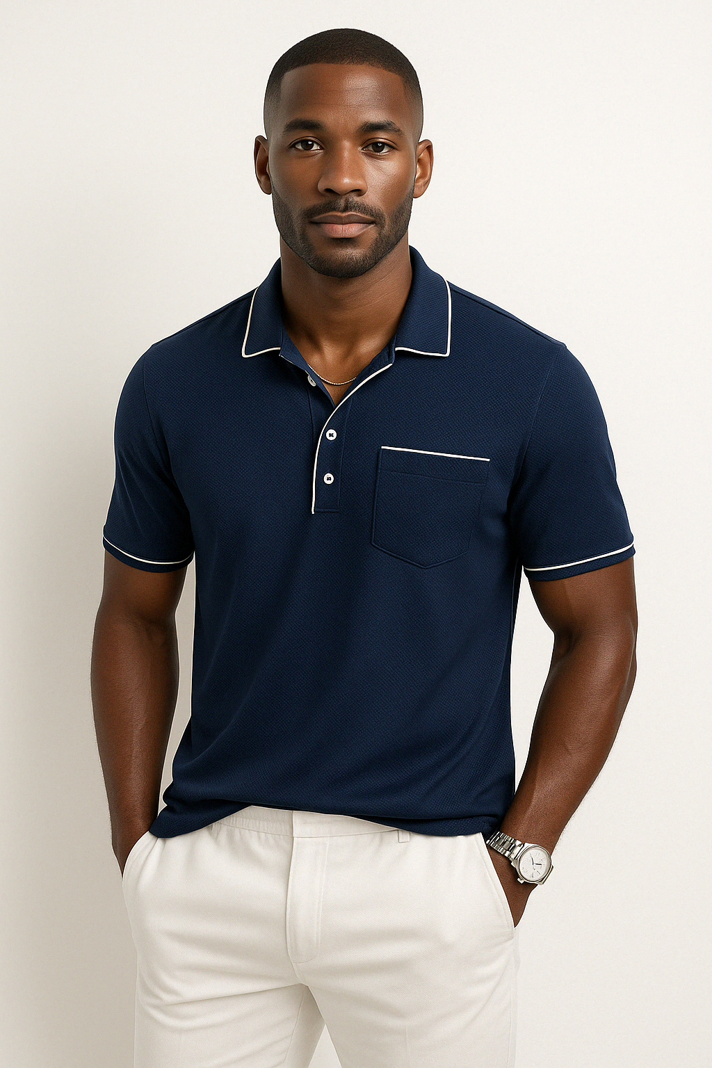 Heren Polo met Contrasterende Boorden | Slim-Fit Knit Look | Smart Retro Vibes