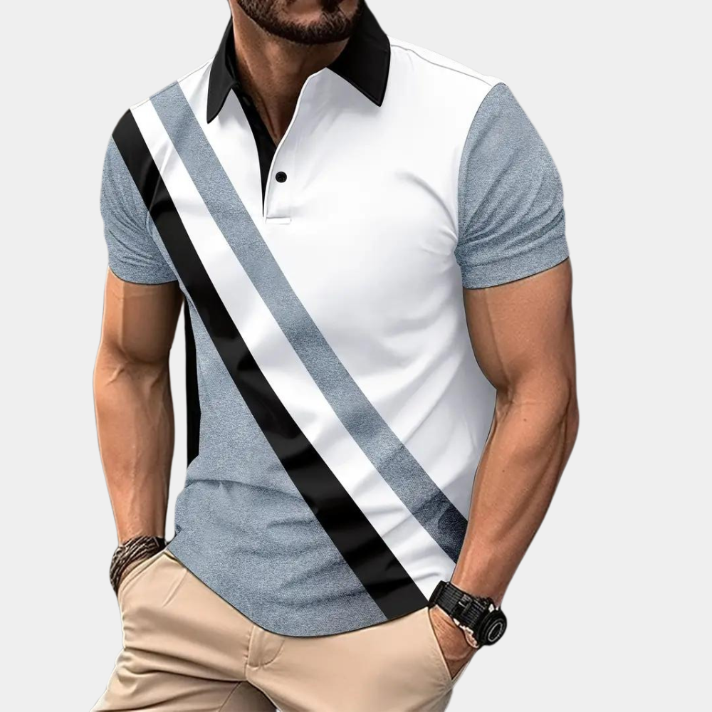 Heren Polo Met Diagonale Strepen | Slim Fit | Modern Sportief Design