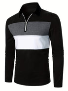 Dit moderne herenpolo shirt met lange mouwen en ritssluiting combineert een sportieve uitstraling met elegantie. Het contrasterende kleurblokontwerp geeft een trendy touch, terwijl de hoogwaardige stof zorgt voor ultiem draagcomfort. Ideaal voor zowel casual als semi-formele gelegenheden.