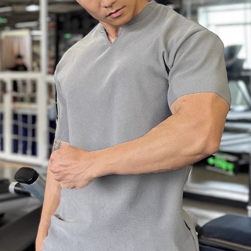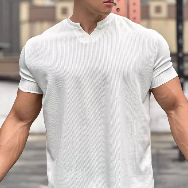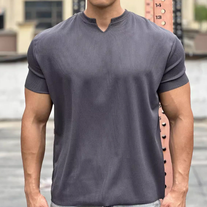 Heren T-shirt met Geribbelde Textuur | Slim Fit | Split Collar Design