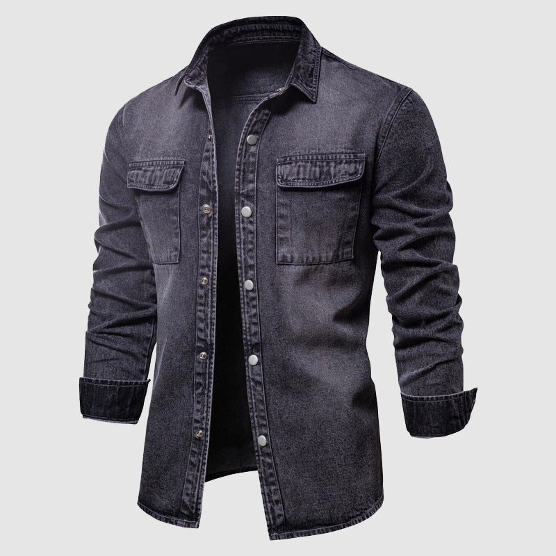 • Design: Klassiek denim met dubbele borstzakken met klep