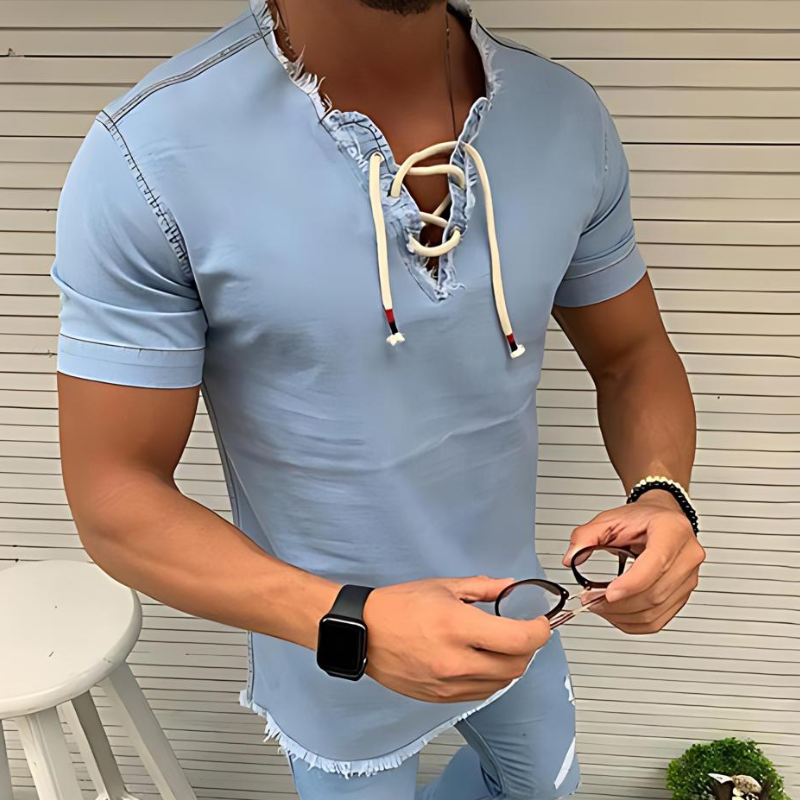 Lace-Up T-Shirt | Katoenmix | Stoer & Comfortabel