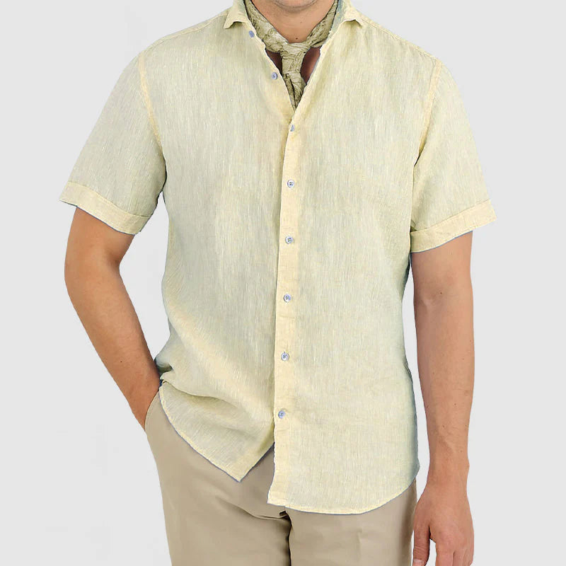 Dit linnen herenoverhemd met korte mouwen is luchtig, lichtgewicht en ideaal voor warme dagen.